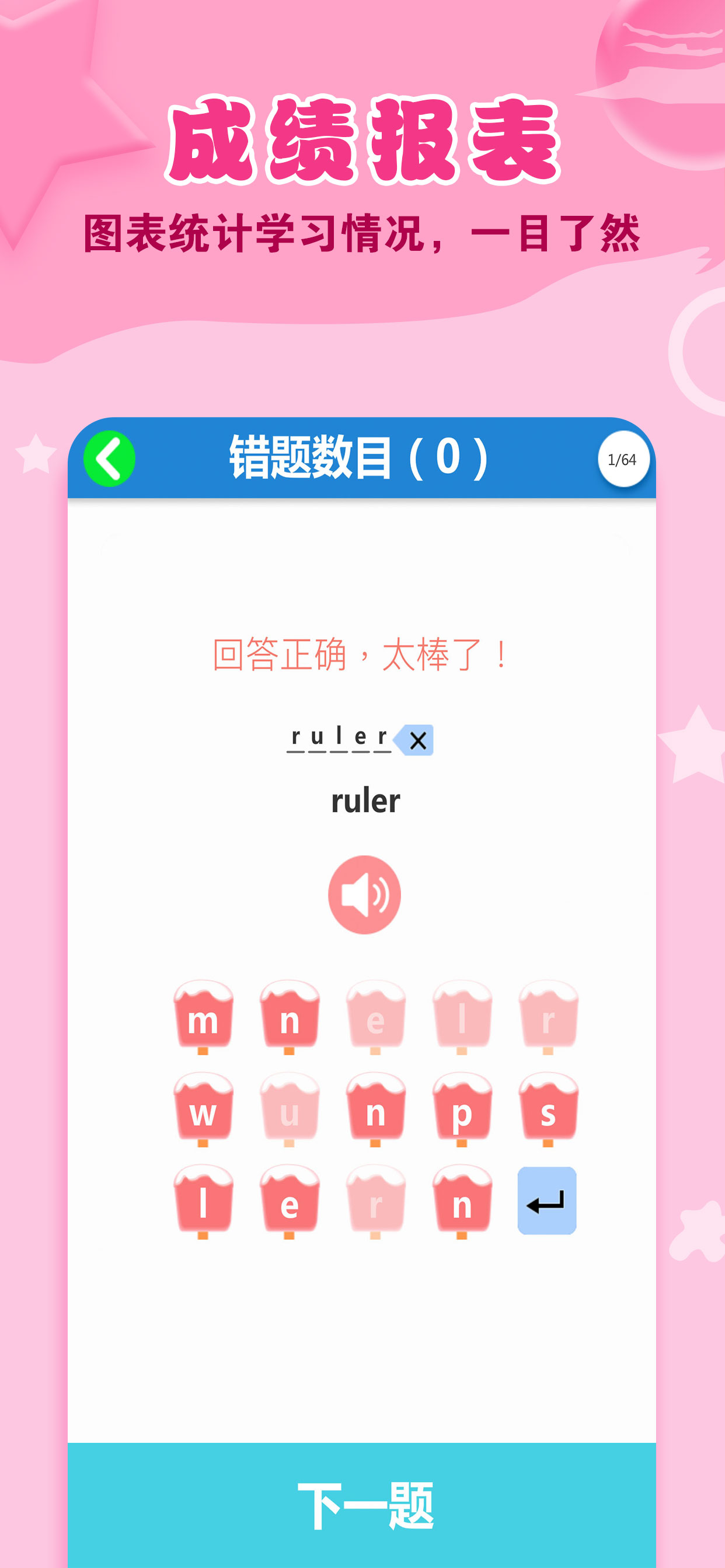 学习汉语拼音对于我们来说是至关重要的,包括汉语拼音学习中所有的声母,韵母和整体认读音节的学习。每个拼音的学习又分为听说写练四个部分,本软件可以让小朋友在快乐中学习,既提高了学习兴趣又达到了学习效果。《拼音学习》中所有的视频读音都是由专业播音教师录制,保证读音正确,解决市面上常见的错误读音,例如韵母o被误读为“喔”的问题;
