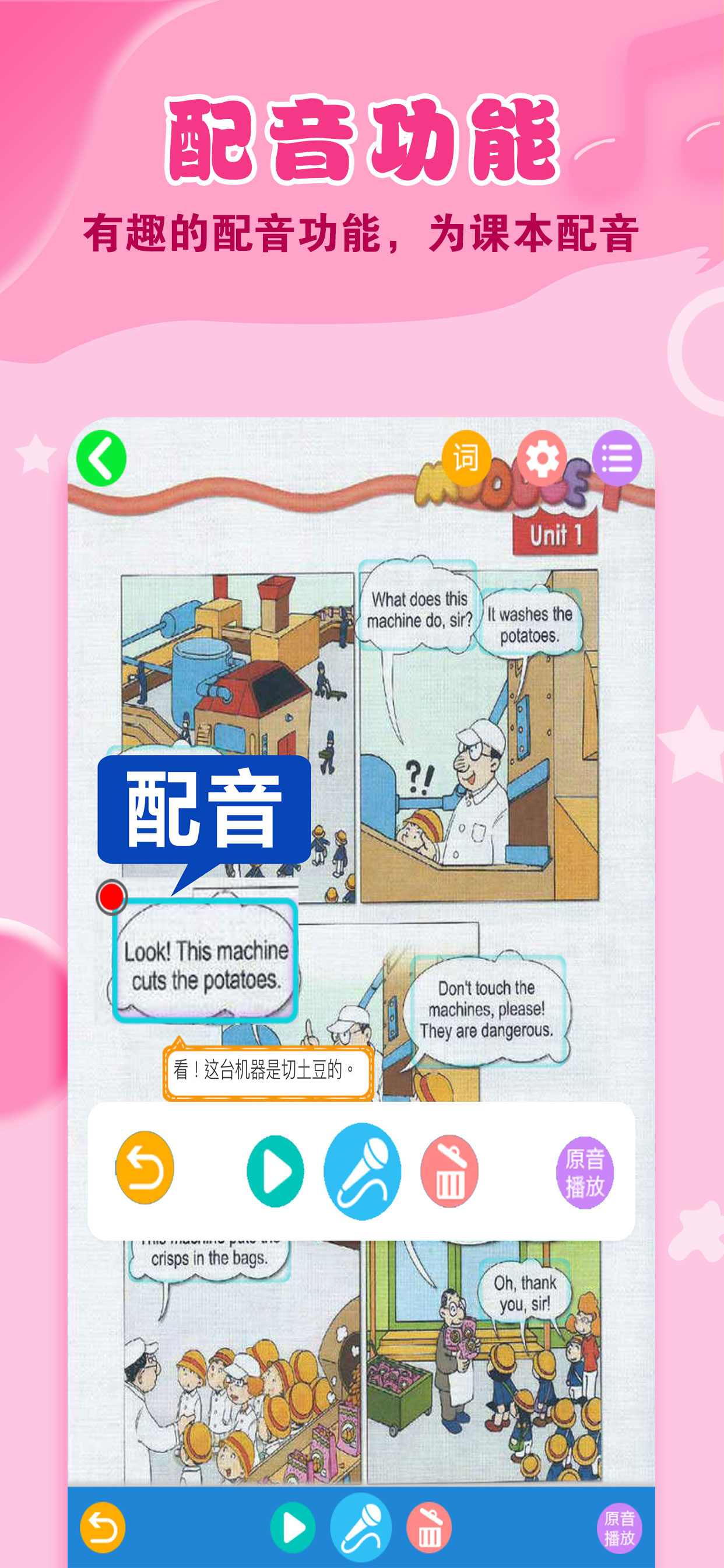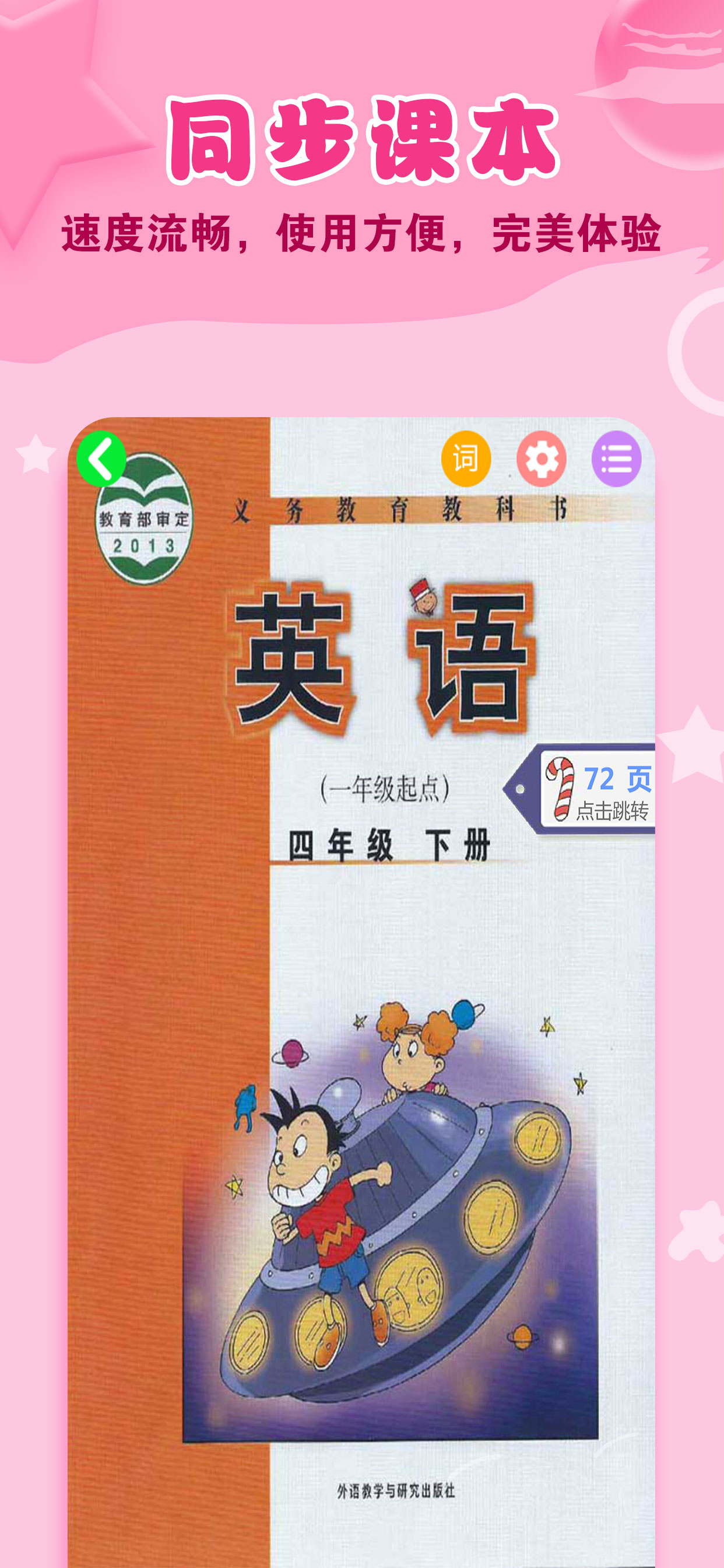 与外研版一年级起点小学英语课本同步,单词,口语,原版声音,爸爸妈妈再也不用愁英语不会读了!灵活选择自己的课程,目前包含最新版外研版三年级起点课本。