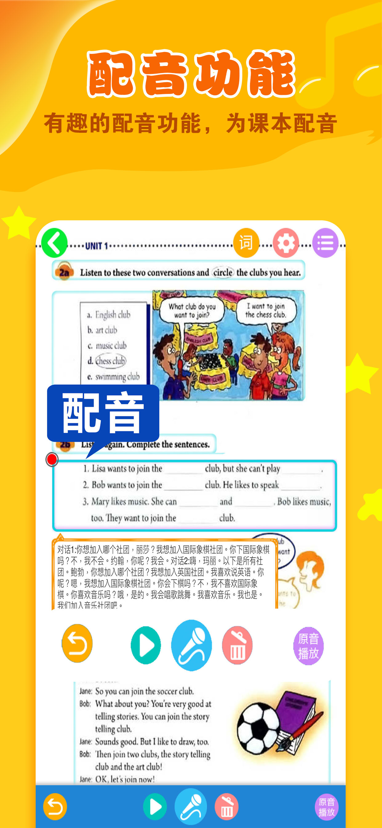 ·趣味互动——录音功能,根据标准发声锻炼孩子的“说英语”,有趣的配音功能,为课本配音!