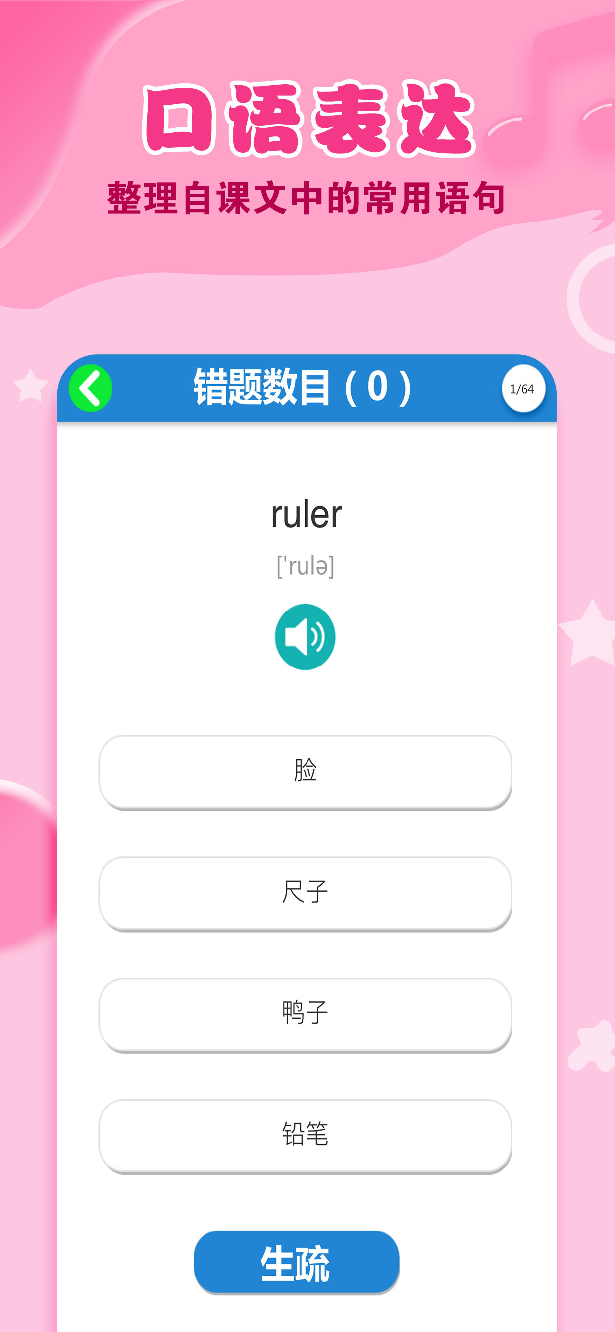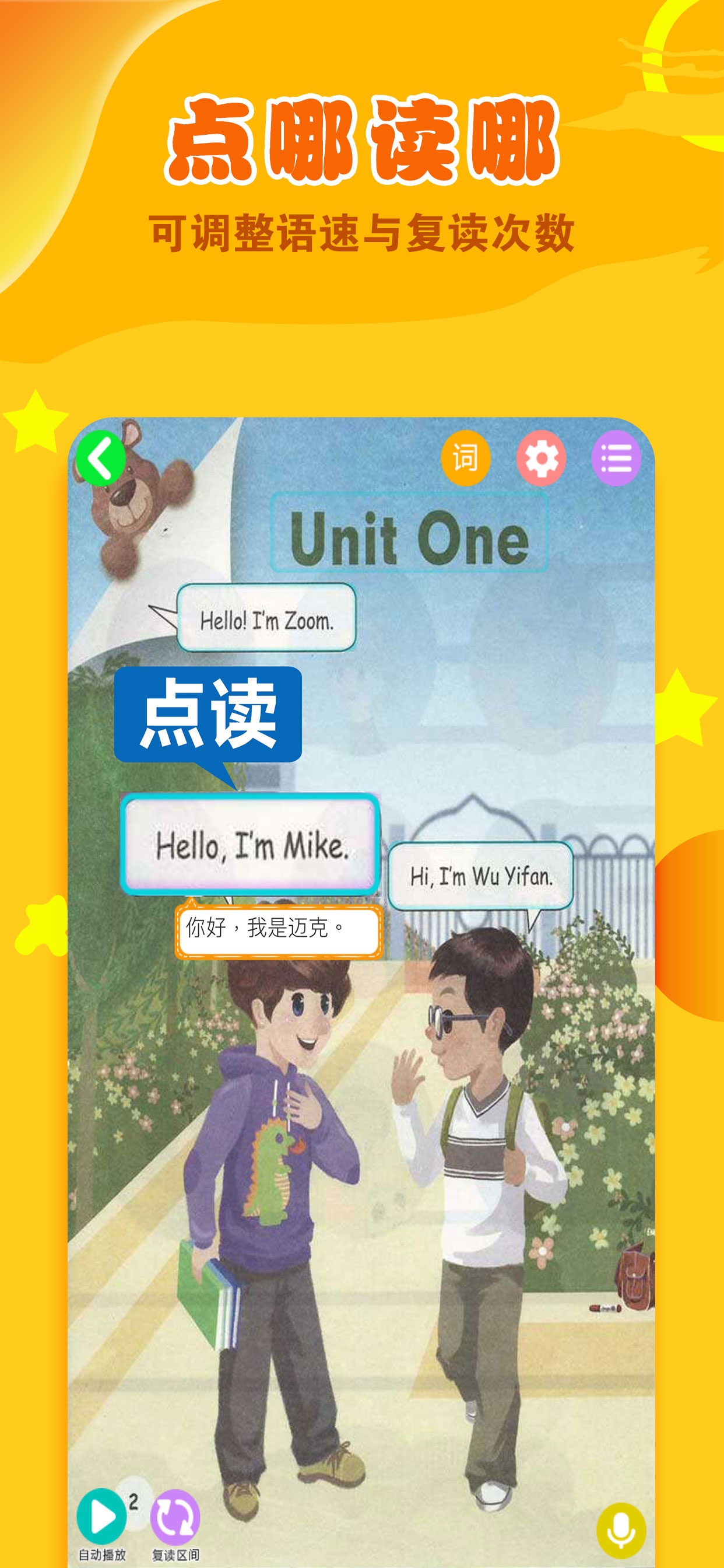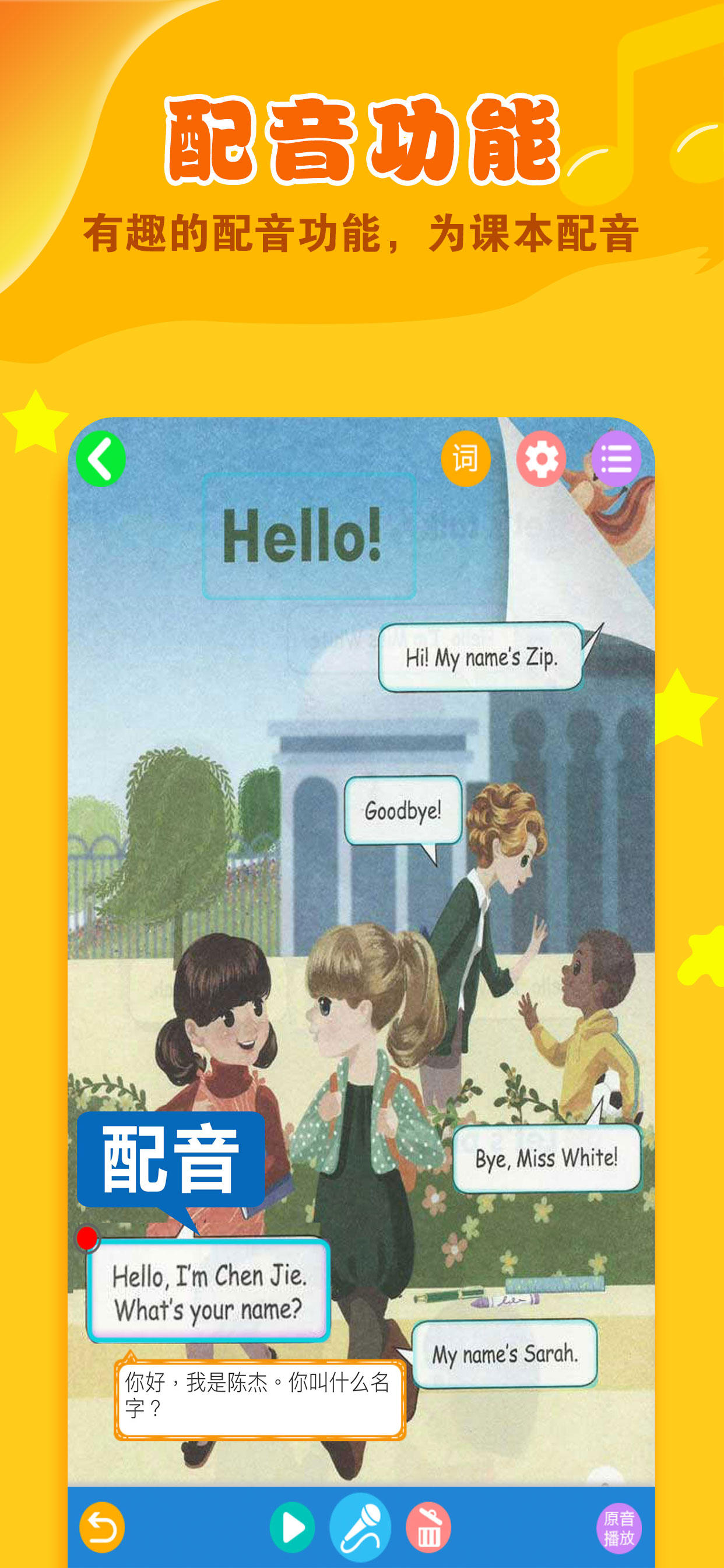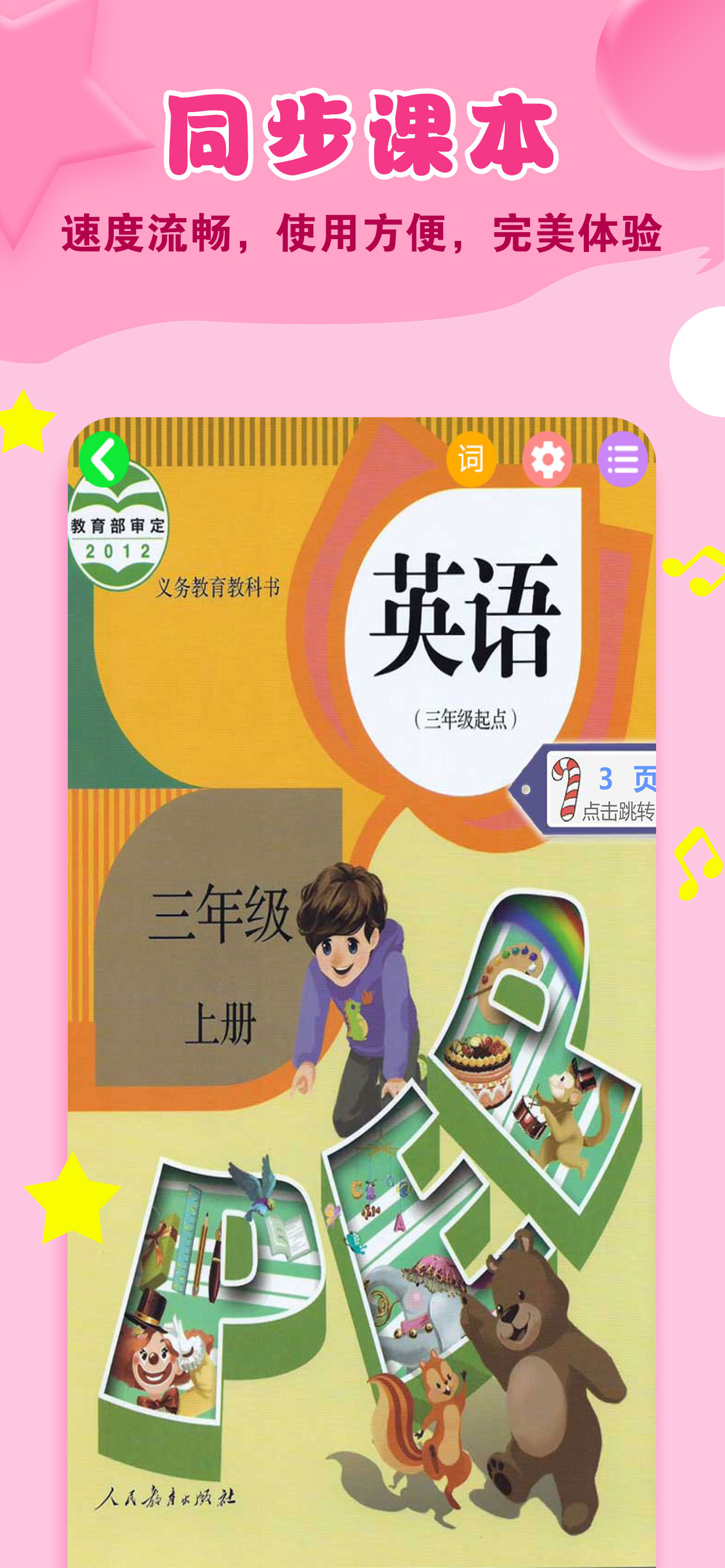 与人教PEP小学英语课本同步,单词,口语,原版声音,爸爸妈妈再也不用愁英语不会读了!灵活选择自己的课程,目前包含最新版小学三年级上册英语课本。