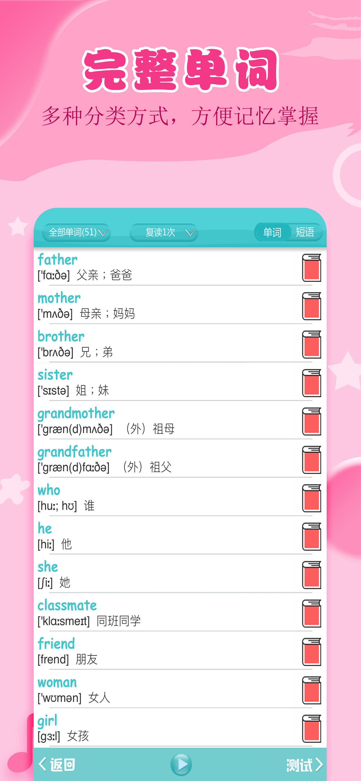 ·功能齐全——点读复读,单词口语整理完备,记录分析学习情况!