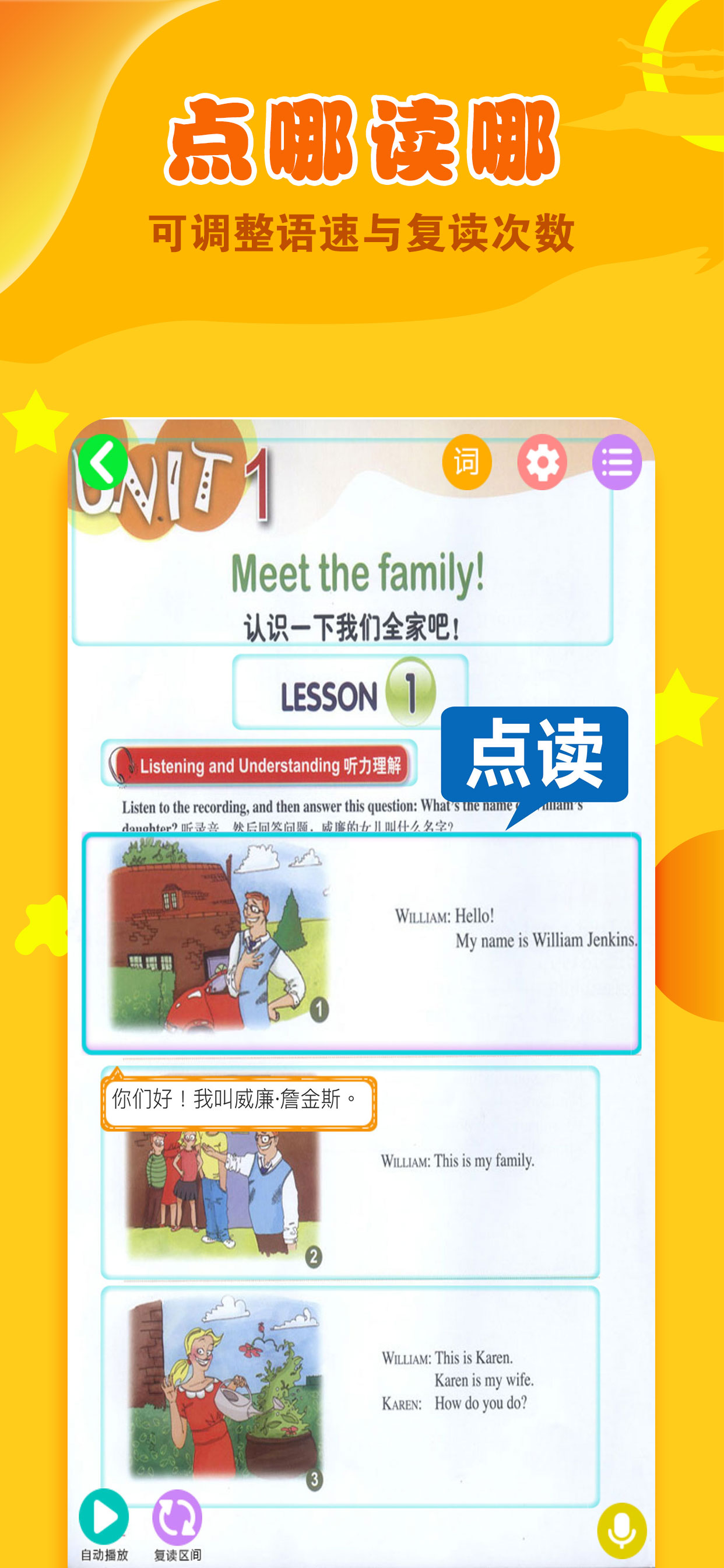 与新概念英语青少版英语课本同步,单词,口语,原版声音,爸爸妈妈再也不用愁英语不会读了!灵活选择自己的课程,目前包含新概念英语青少版小学英语课本。