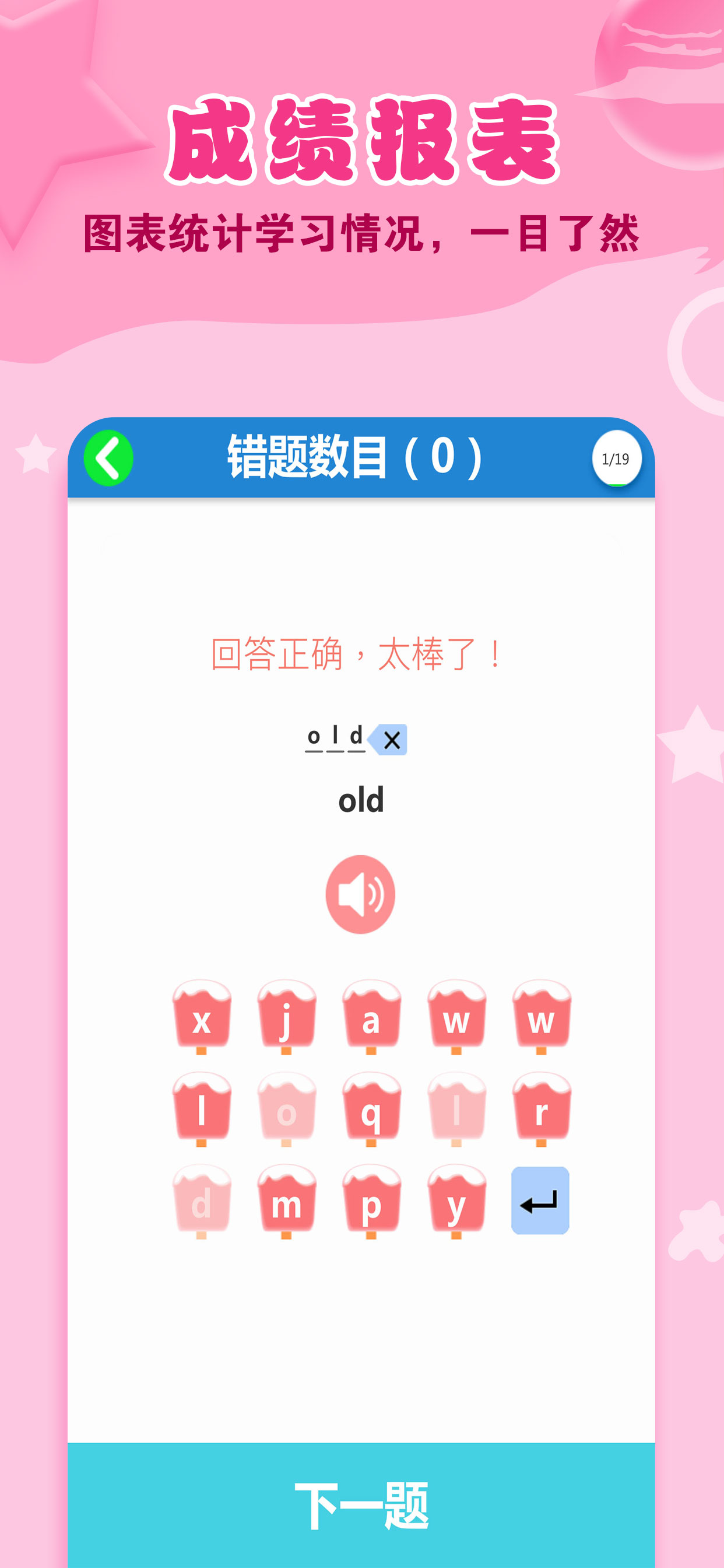 学习汉语拼音对于我们来说是至关重要的,包括汉语拼音学习中所有的声母,韵母和整体认读音节的学习。每个拼音的学习又分为听说写练四个部分,本软件可以让小朋友在快乐中学习,既提高了学习兴趣又达到了学习效果。《拼音学习》中所有的视频读音都是由专业播音教师录制,保证读音正确,解决市面上常见的错误读音,例如韵母o被误读为“喔”的问题;