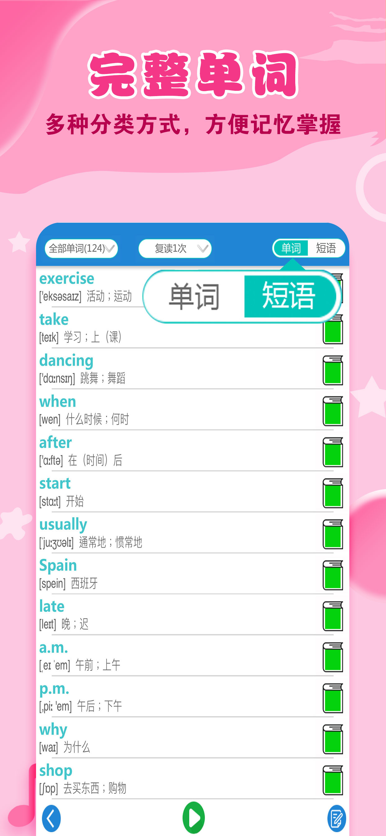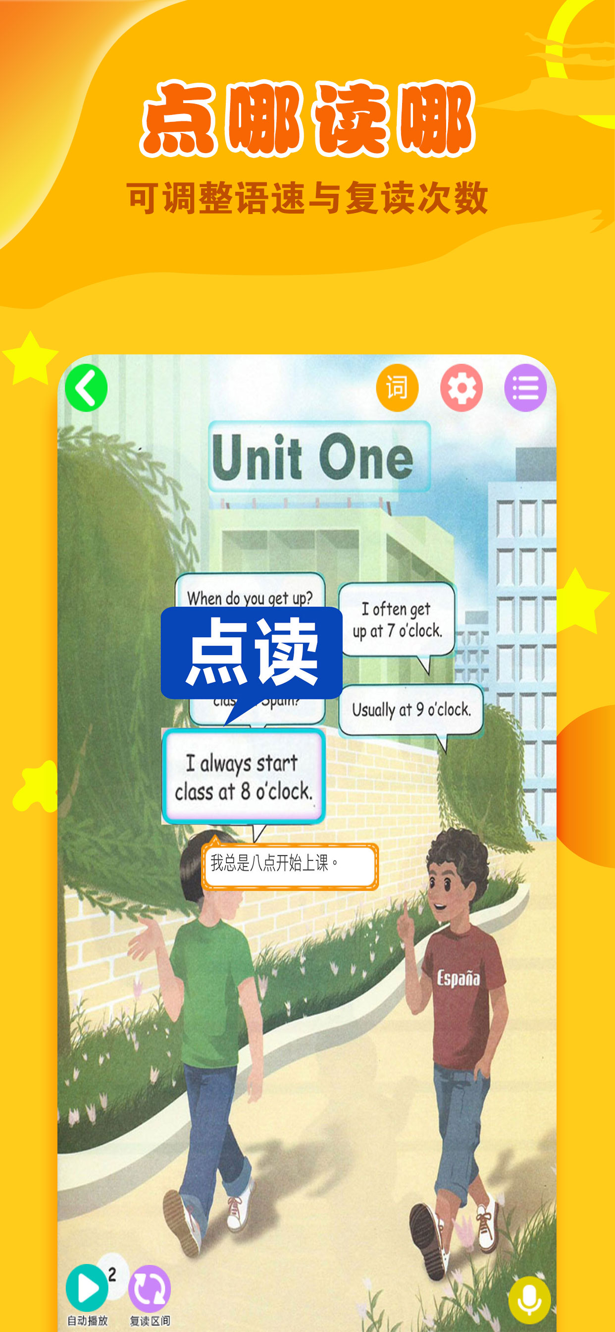 ·功能齐全——点读复读,单词口语整理完备,记录分析学习情况!