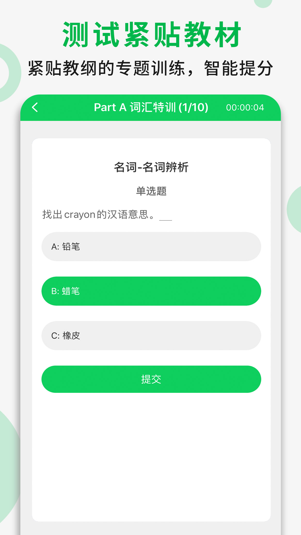 单词记忆:课文同步单词,单词评测,跟读、听写全面练习,记忆更有效。