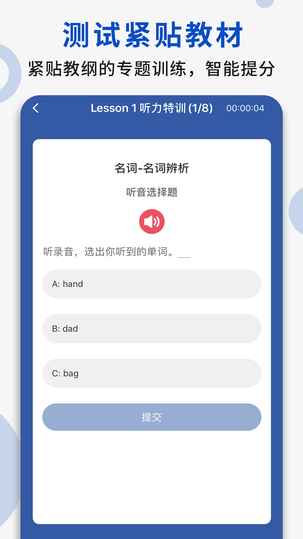 单词记忆:课文同步单词,单词评测,跟读、听写全面练习,记忆更有效。